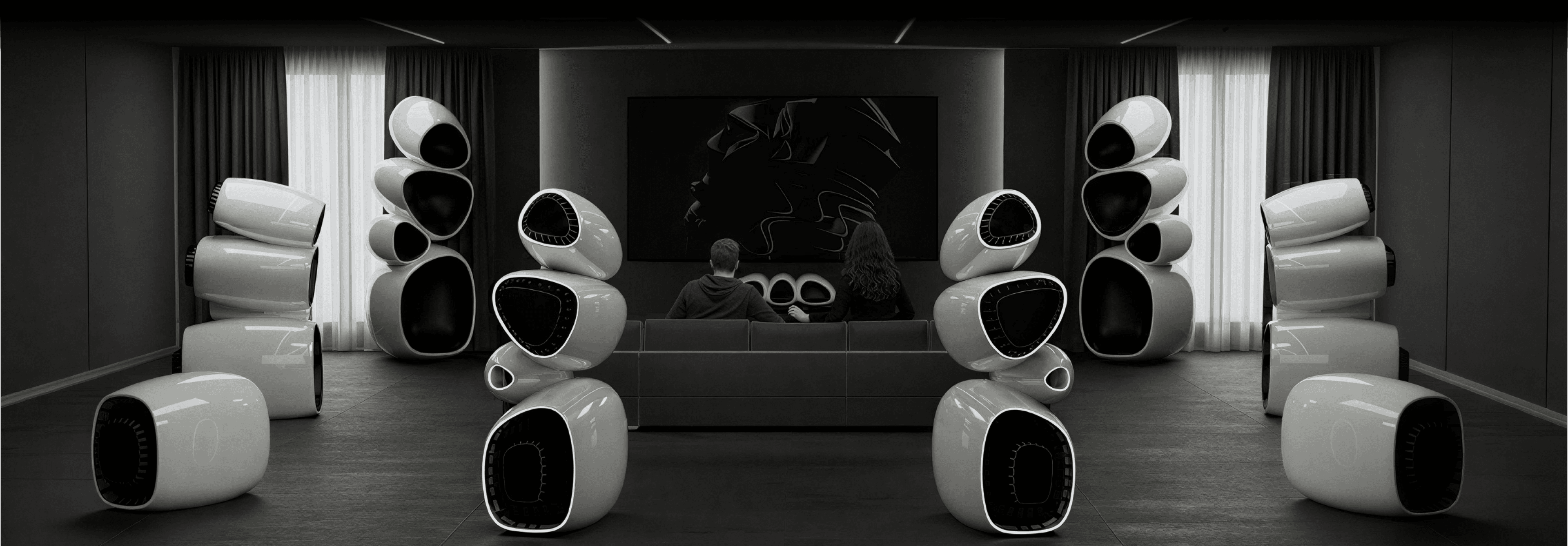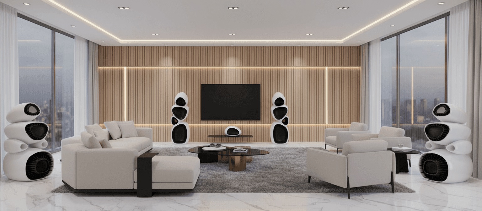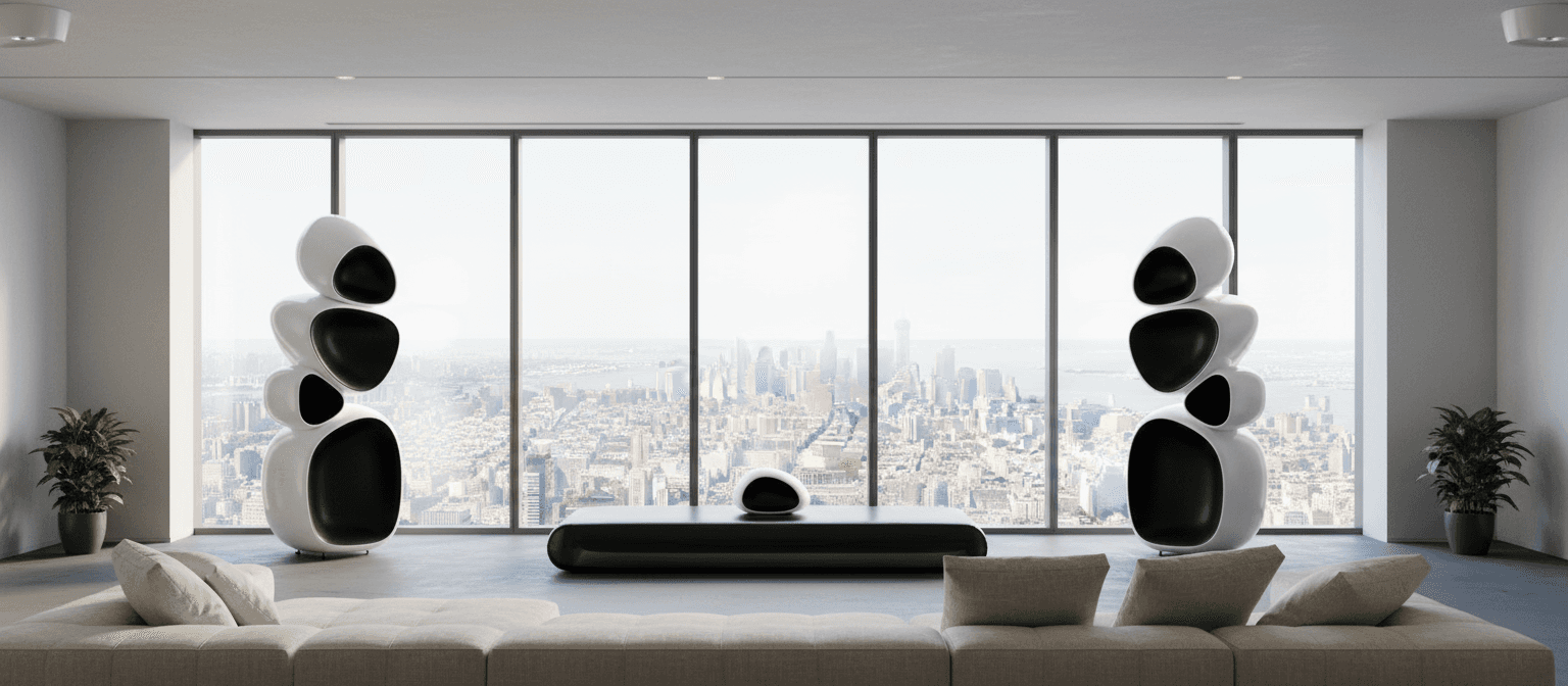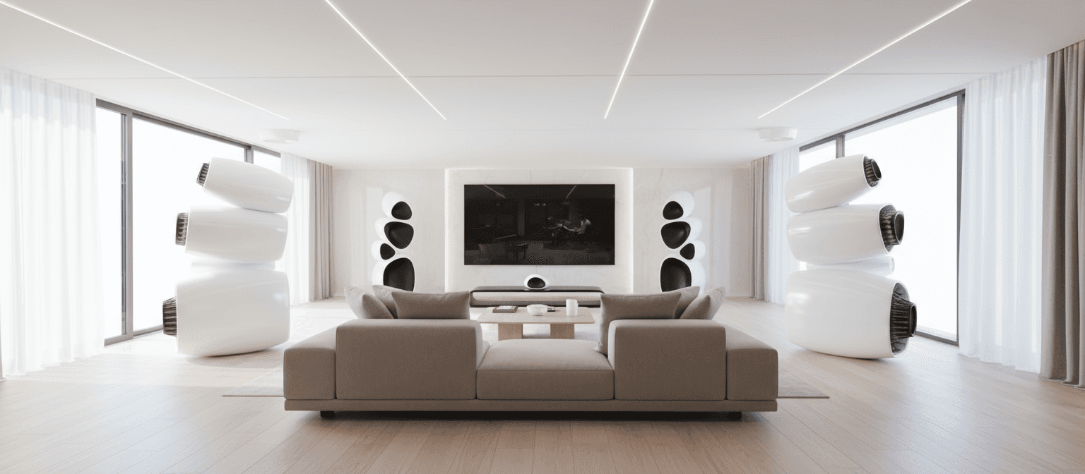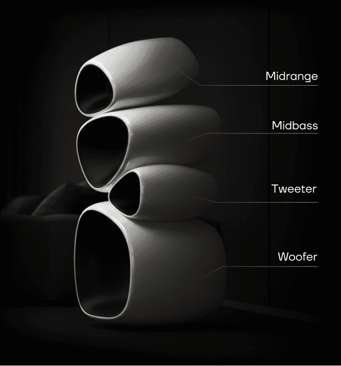 Organic, monolithic architecture: Four integrated acoustic chambers eliminate resonances, ensuring pristine clarity and depth. Visually stunning, purpose-built contours that serve acoustic optimization.